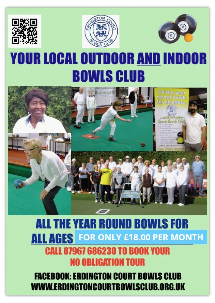 We are the largest INDOOR AND OUTDOOR flat green (lawn) bowls club in North Birmingham, Sutton Coldfield and South Staffs.